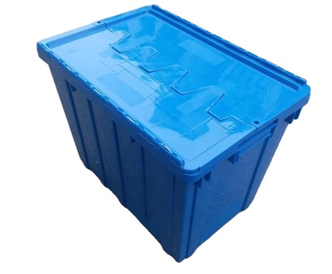 Haute qualité 690x430x320mm boîte solide durable et réutilisable boîte mobile emboîtable boîte de rangement en plastique avec couvercle attaché