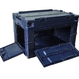 プロモーションNAVYブルーカラー50 Lフロントオープン折りたたみ式プラスチックボックス収納プラスチックキャンプコンテナ蓋付き
