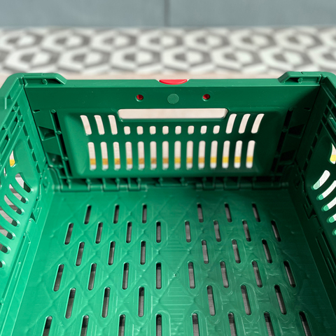 Supermarkt Herbruikbare Food Grade 23.6X15.7X4.72 Inch Inklapbare Functie Geperforeerde Soort Plastic Opslag Opvouwbare Kratten Voor Fruit
